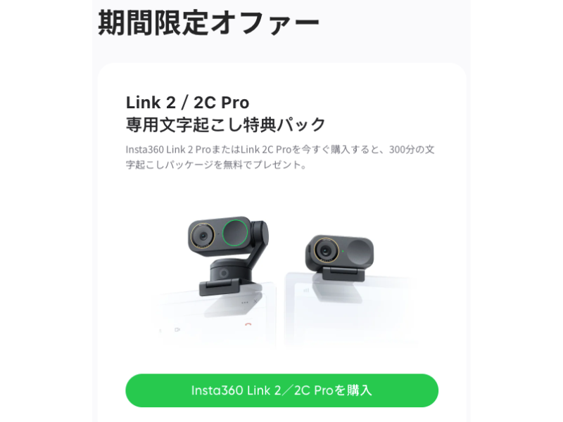 また今なら、Link 2 Proを購入すると、300分の文字起こしパッケージが付いてくるため、InSightの機能を試すこともできます。