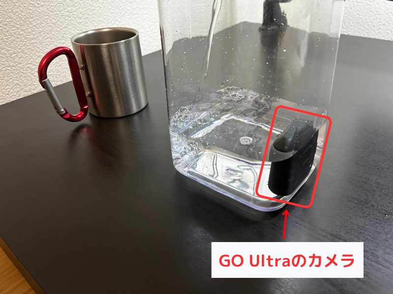 実際に、GO Ultraカメラ本体をビンの中にいれ、上から水を注いで撮影してみました。