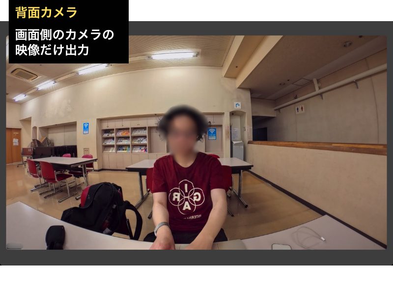 一般的なWebカメラ的な使い方です。同じように前面カメラだけという出力もできます。