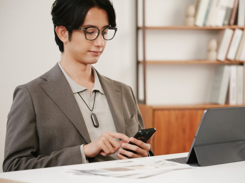 Plaud NotePin Sは、服の下でもバッチリ録音できて、操作もスマホや手探りでこっそり行えます。
