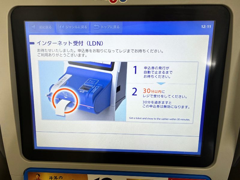 - コンビニの専用端末に番号を入力して申込券を発行する